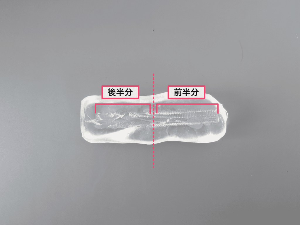 ホール内部は、前半分と後半分でヒダ構造が異なります(※下の写真)。